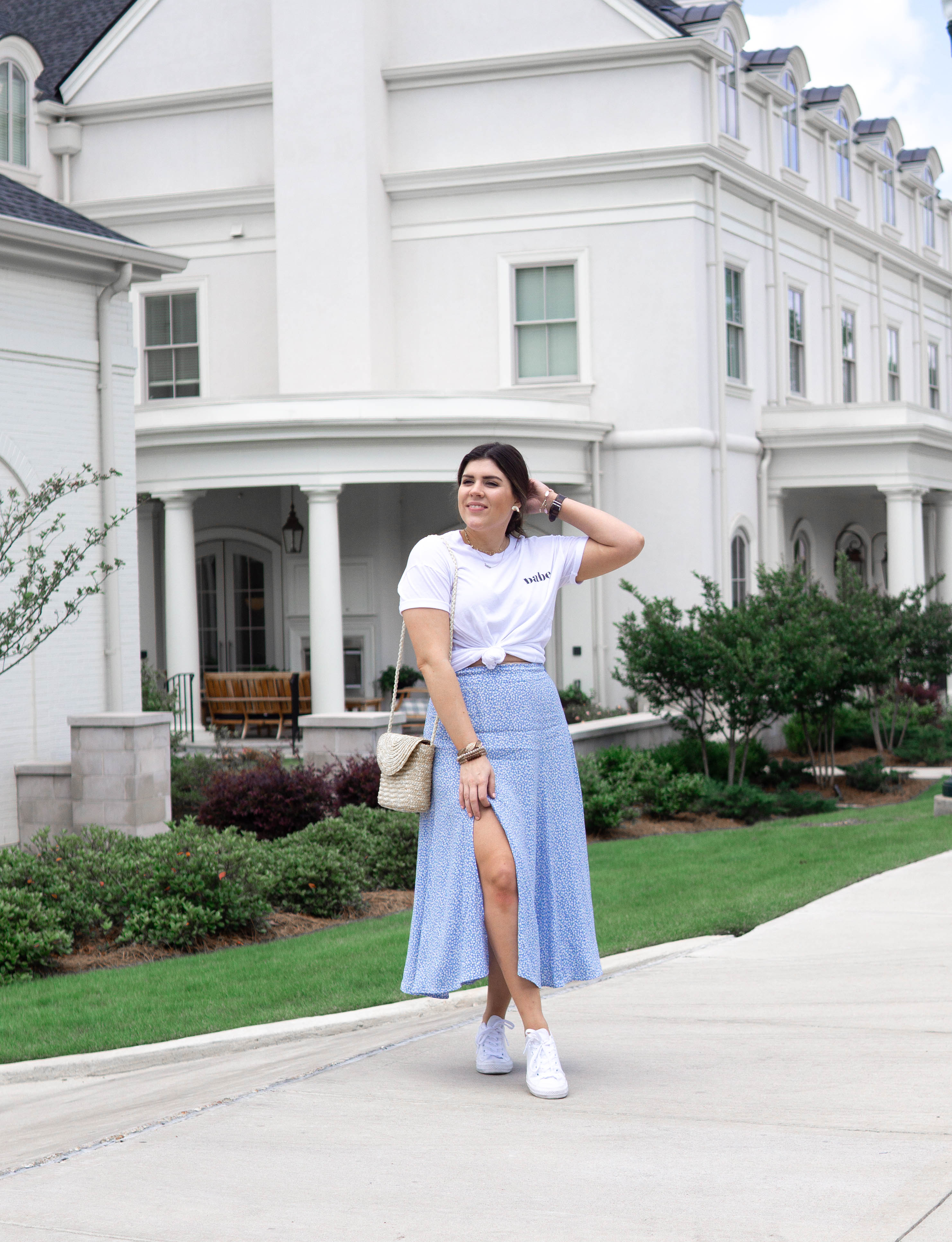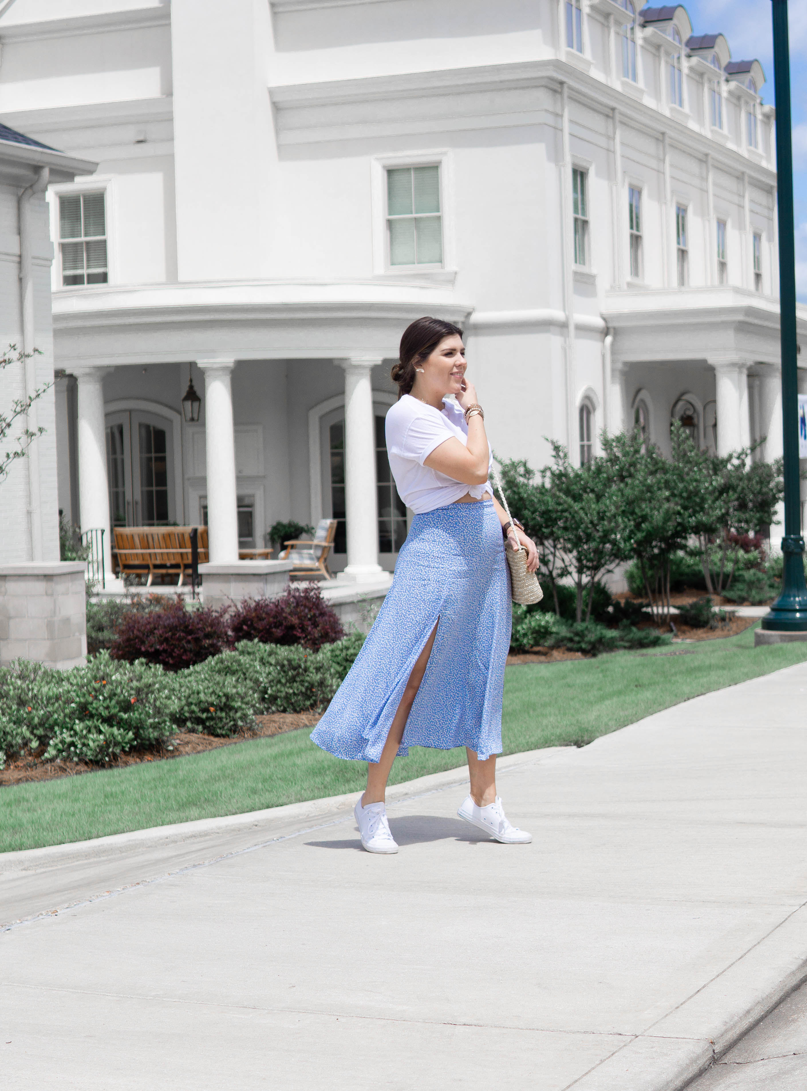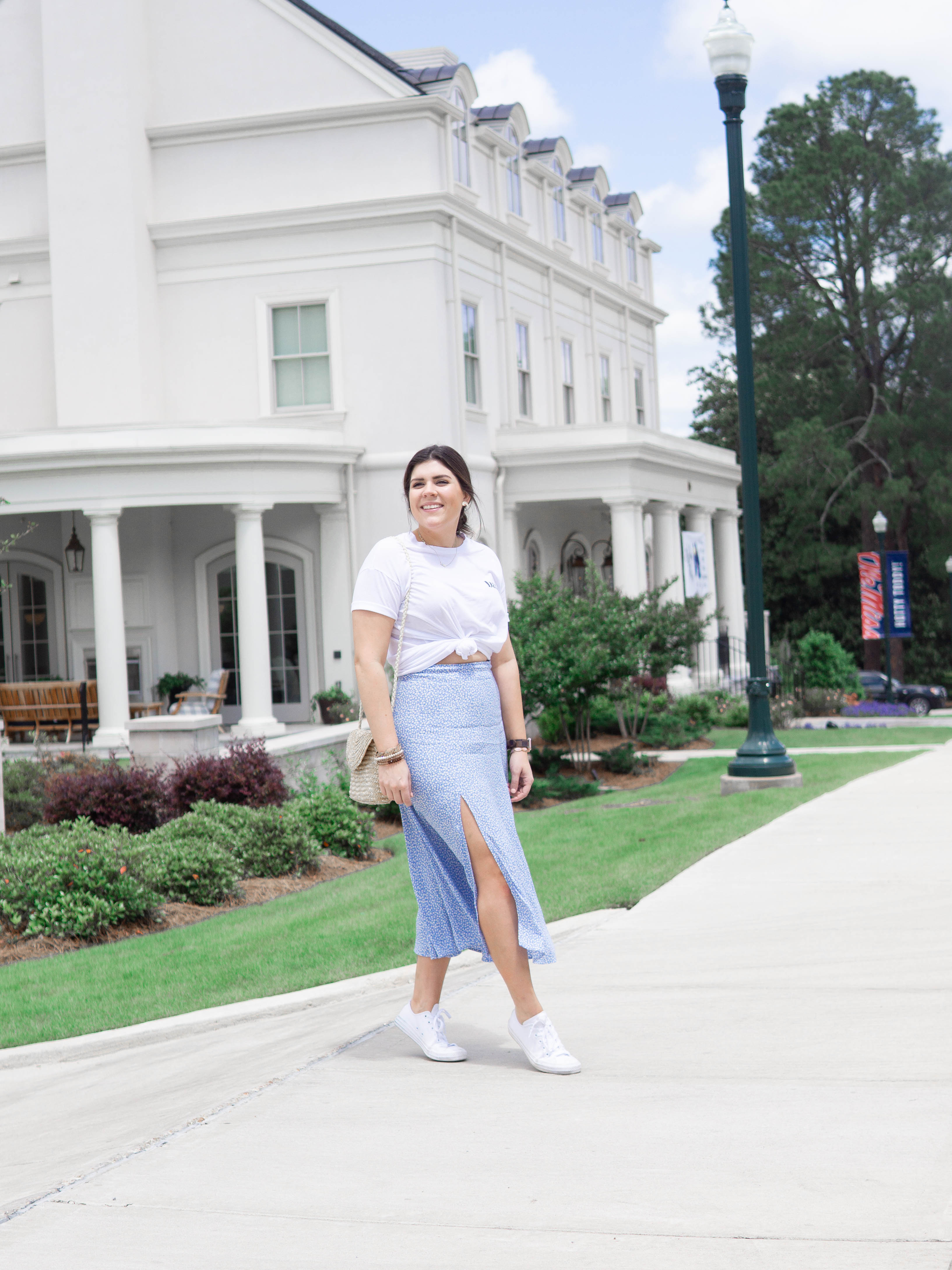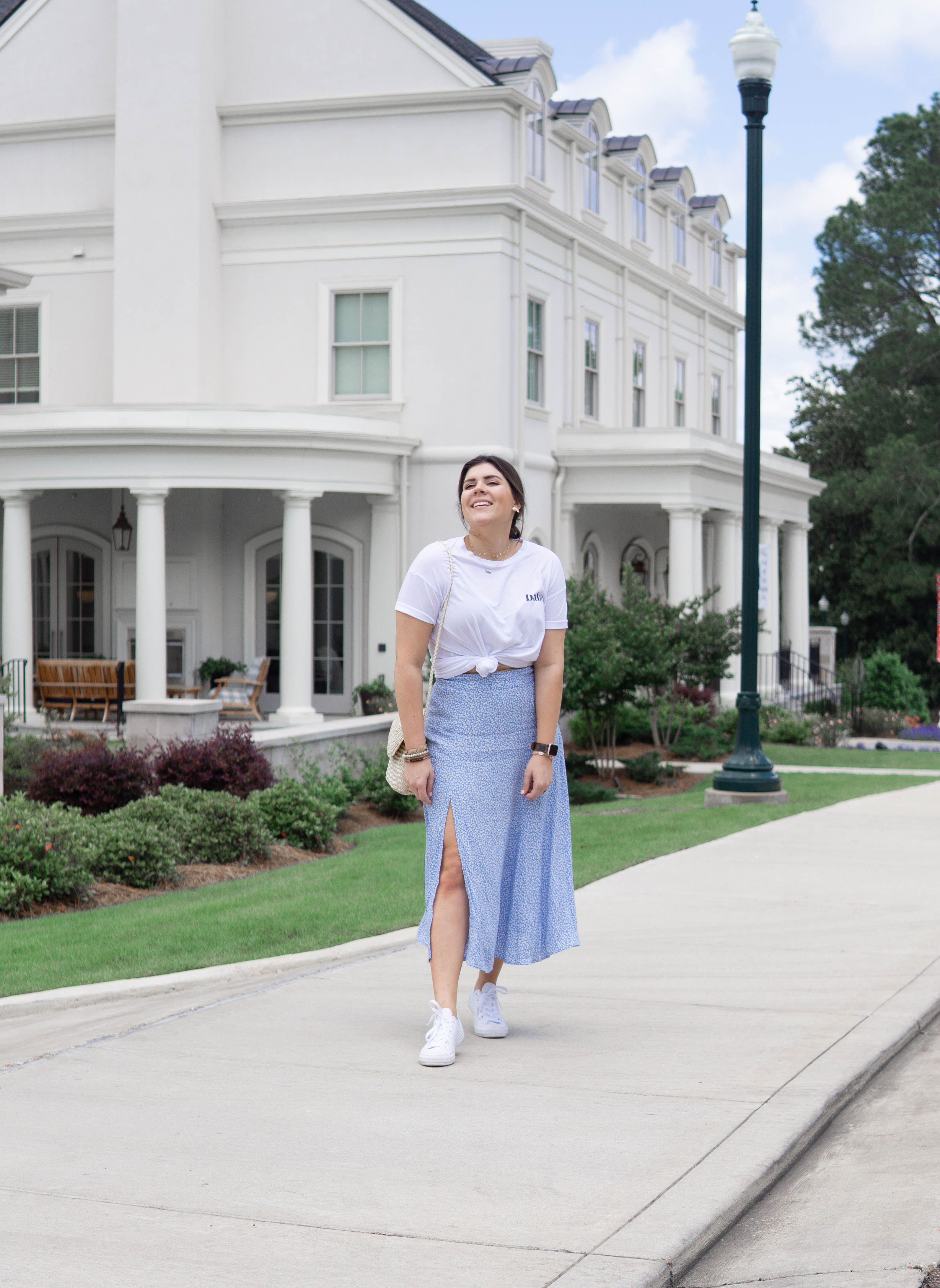 This skirt is a MUST HAVE at only $30. I’m wearing the size 8 here so I’d say size up 1 for a comfortable fit. I love the slit in the front, you guys! I’m now on the hunt for EVERY slitted skirt I can find because it’s such an effortless look that you can dress up or down.
