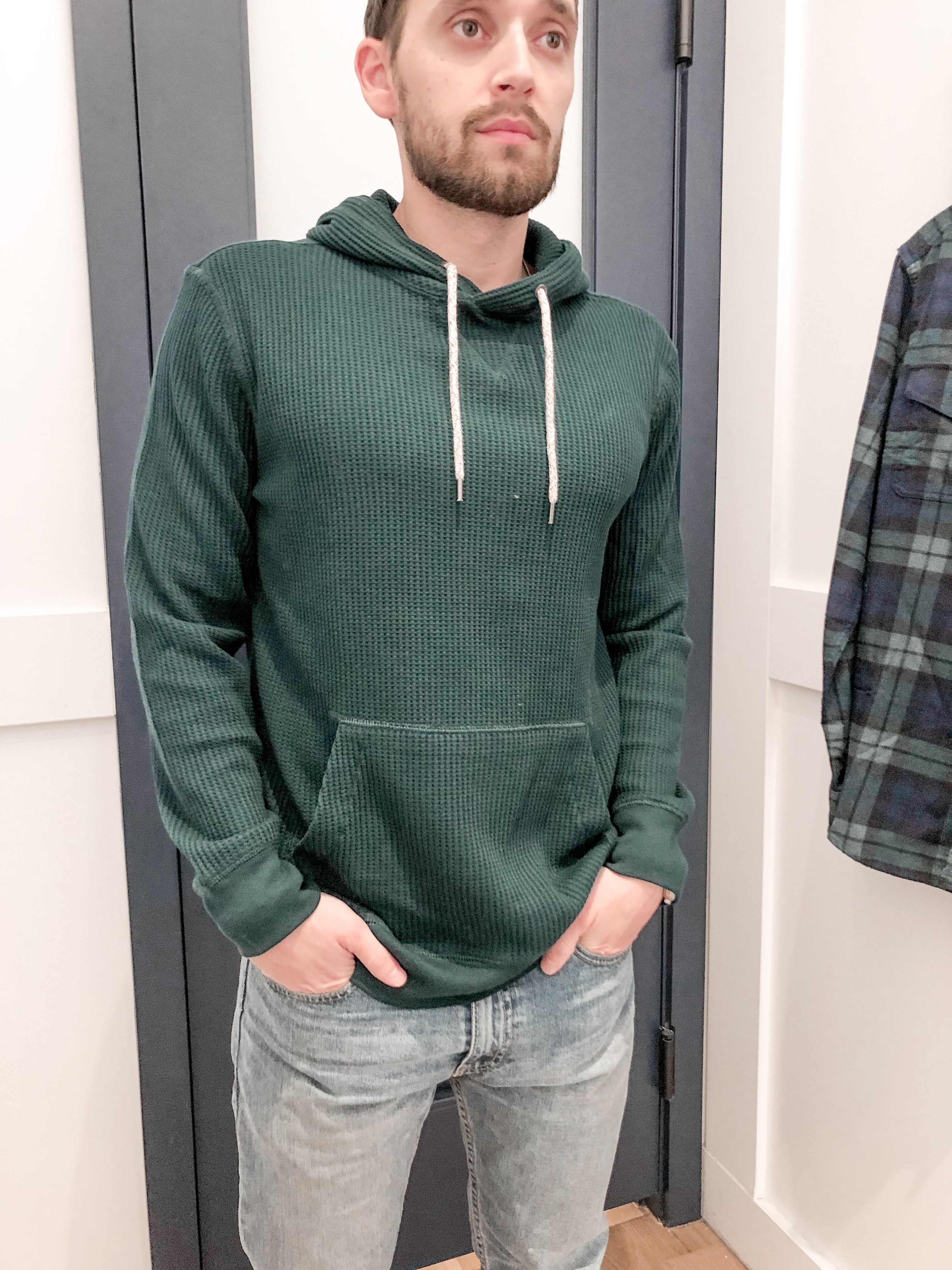 Men’s Waffle Knit Hoodie (Keith bought this in a medium but the small fit as well)