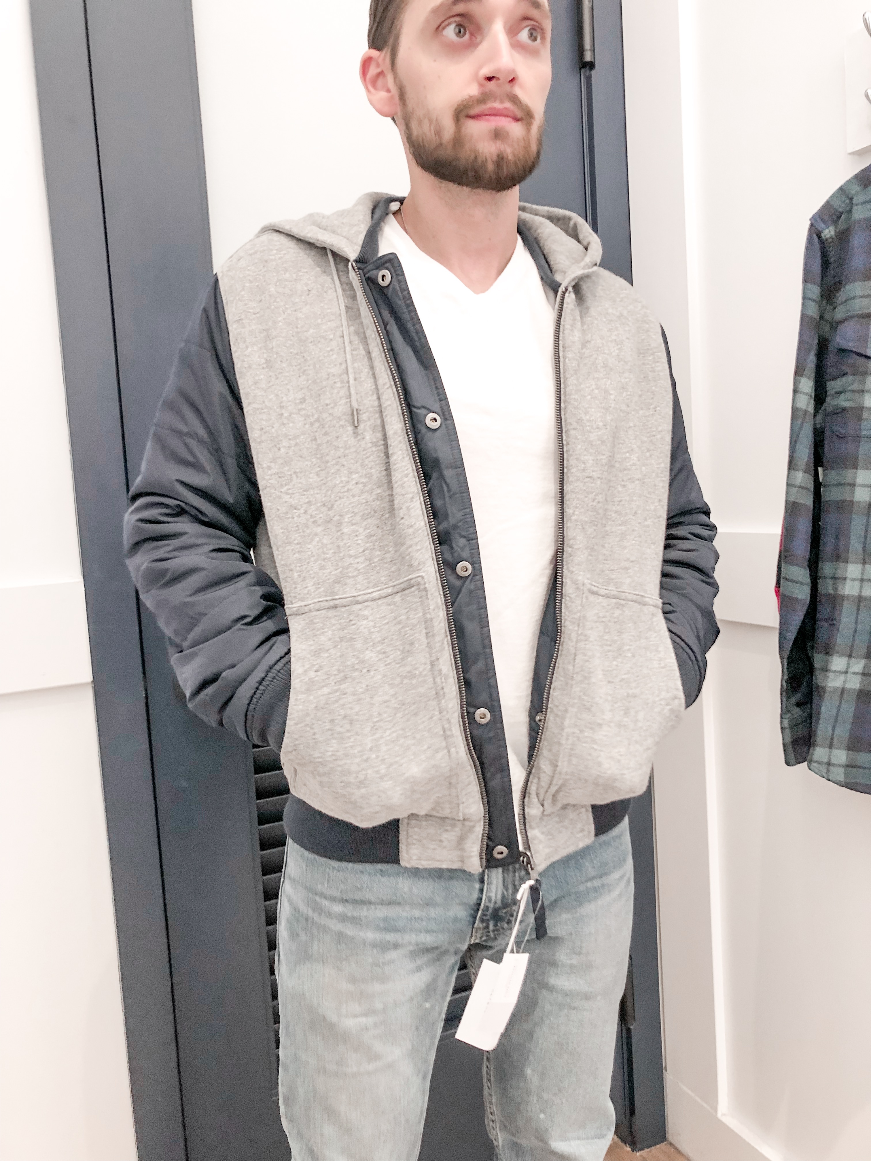 Men’s Reversible Jacket (M) | White V-Neck Tee (S)