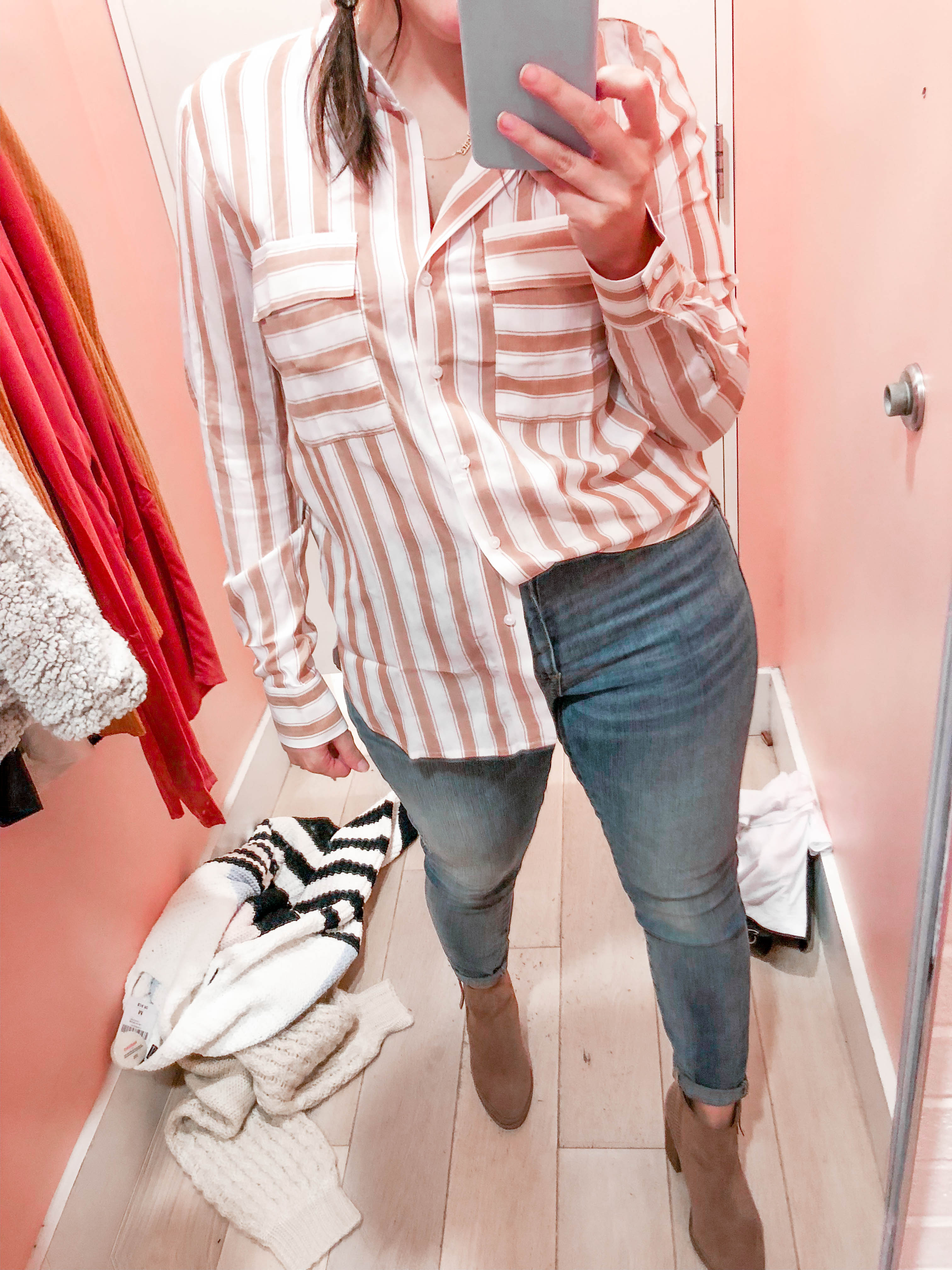Striped Button Up Blouse – Another Almost Identical Option – Wearing a Medium – Runs TTS