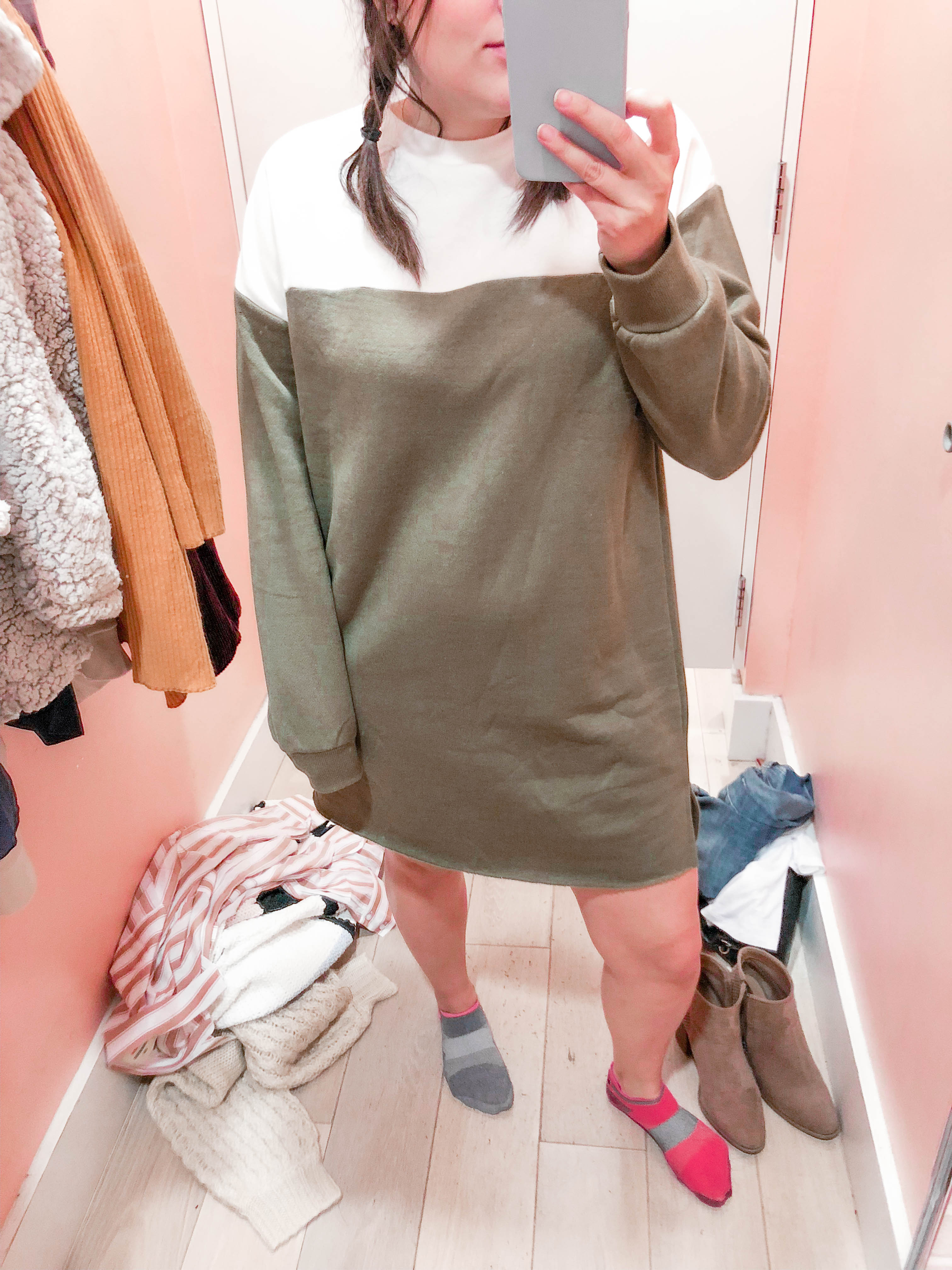 Olive Sweatshirt Dress – Wearing a Large/Would Size Down to a Medium. – Runs TTS