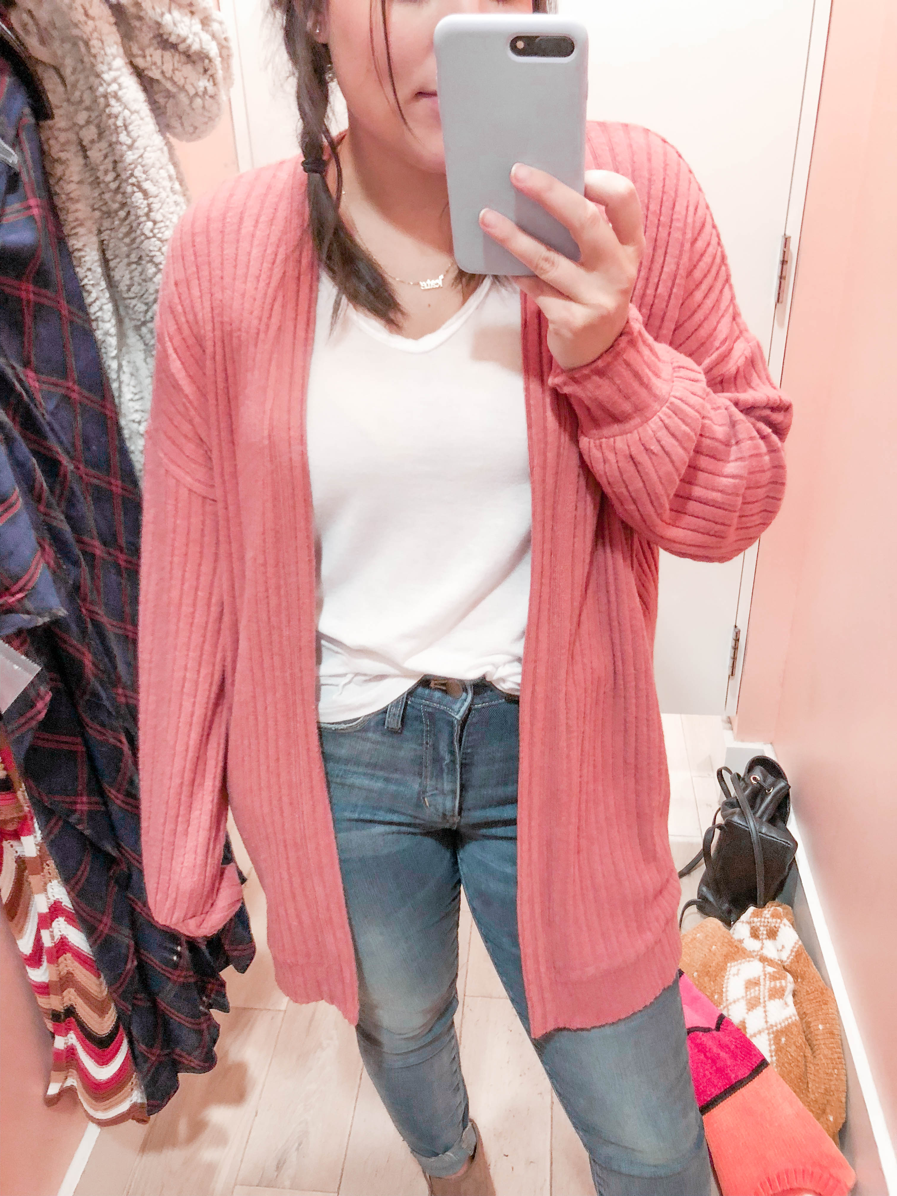 Ribbed Open Front Pink Cardigan – Wearing a Medium – Runs TTS