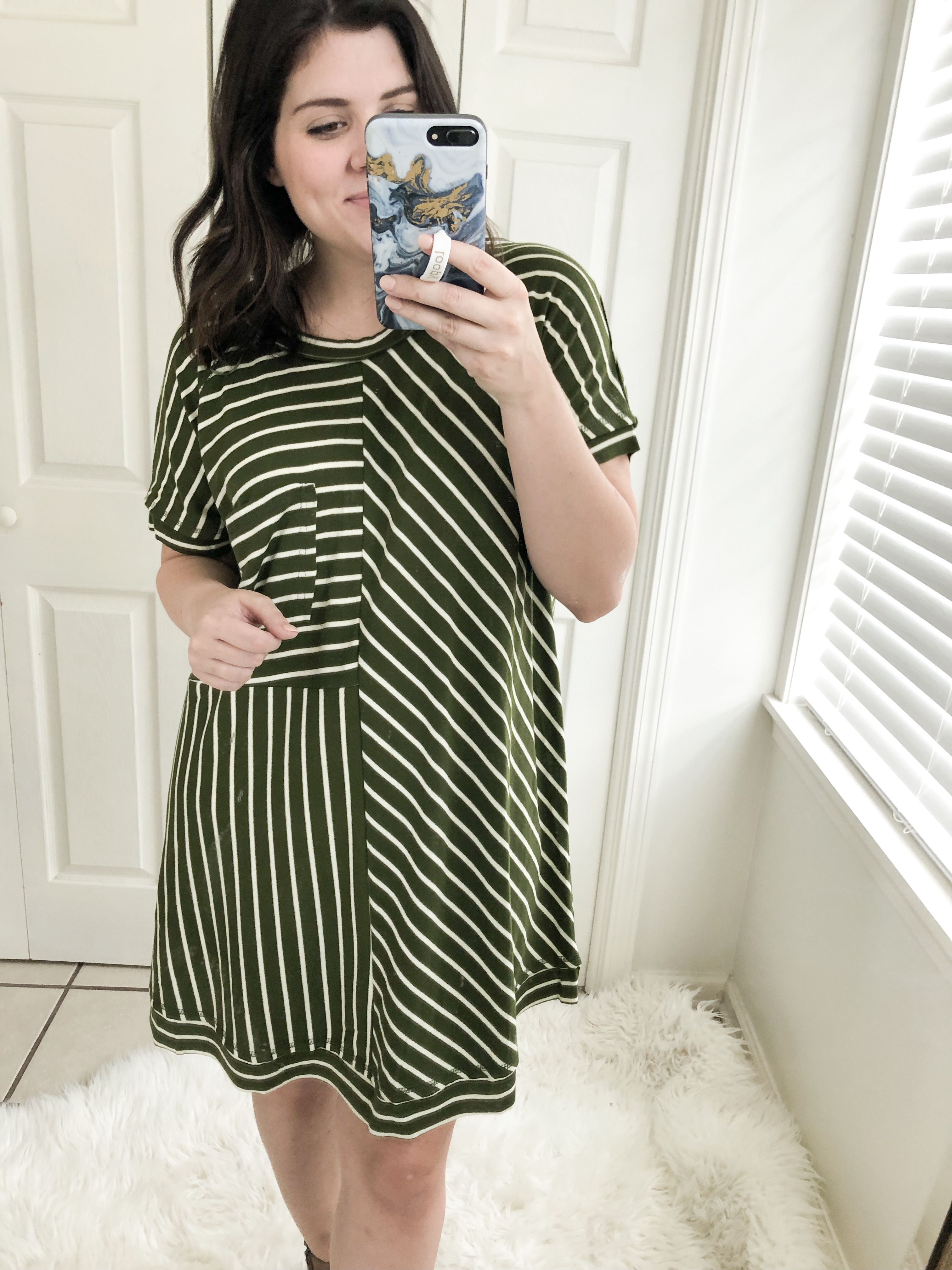 Striped T-Shirt Dress  |  Wearing a Medium  | Oversized – I would size down