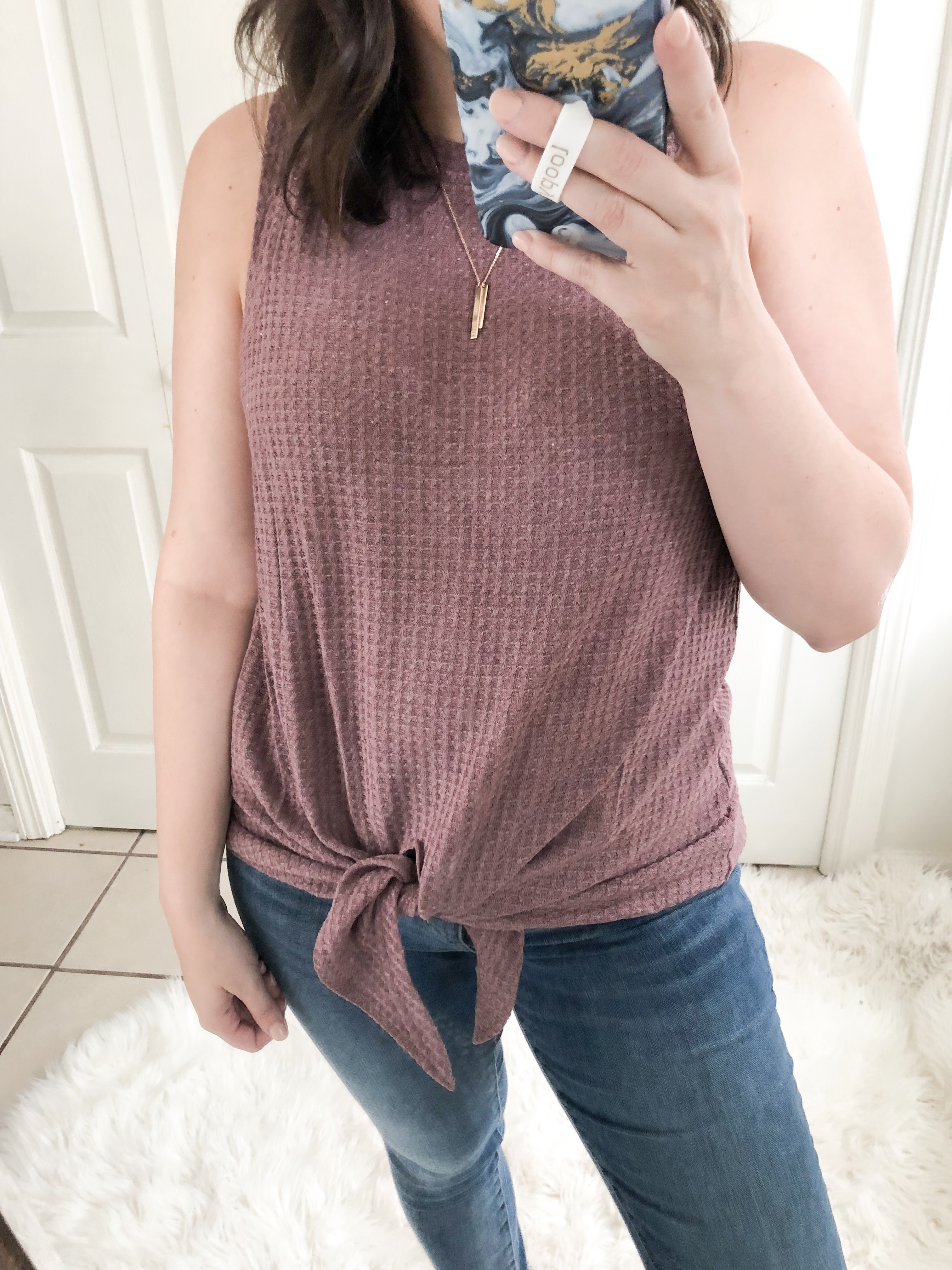 Waffle Knit Tie Front Tank  |  Wearing a Medium  | TTS