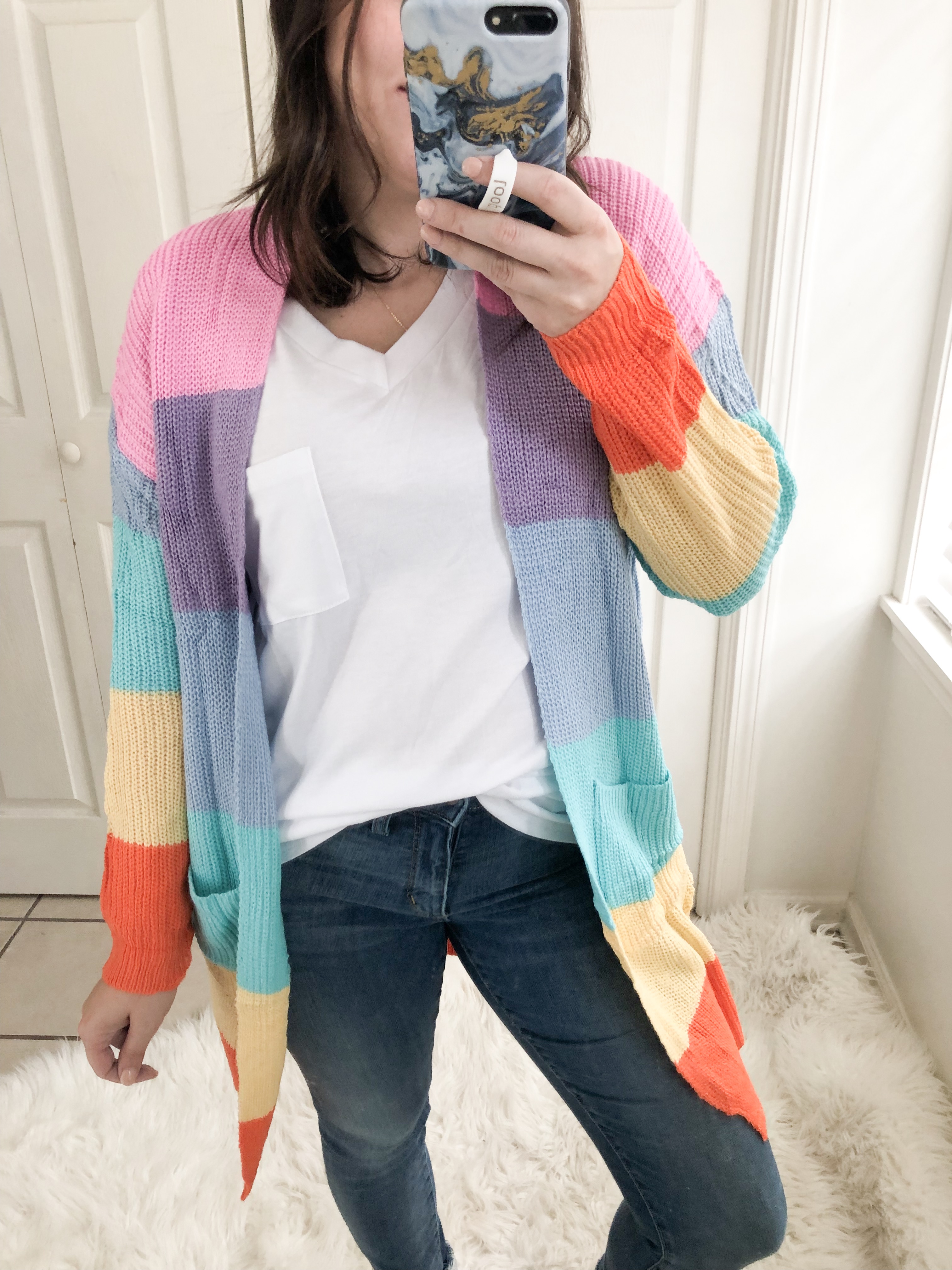 Rainbow Cardigan  |  Wearing a Medium  |  TTS