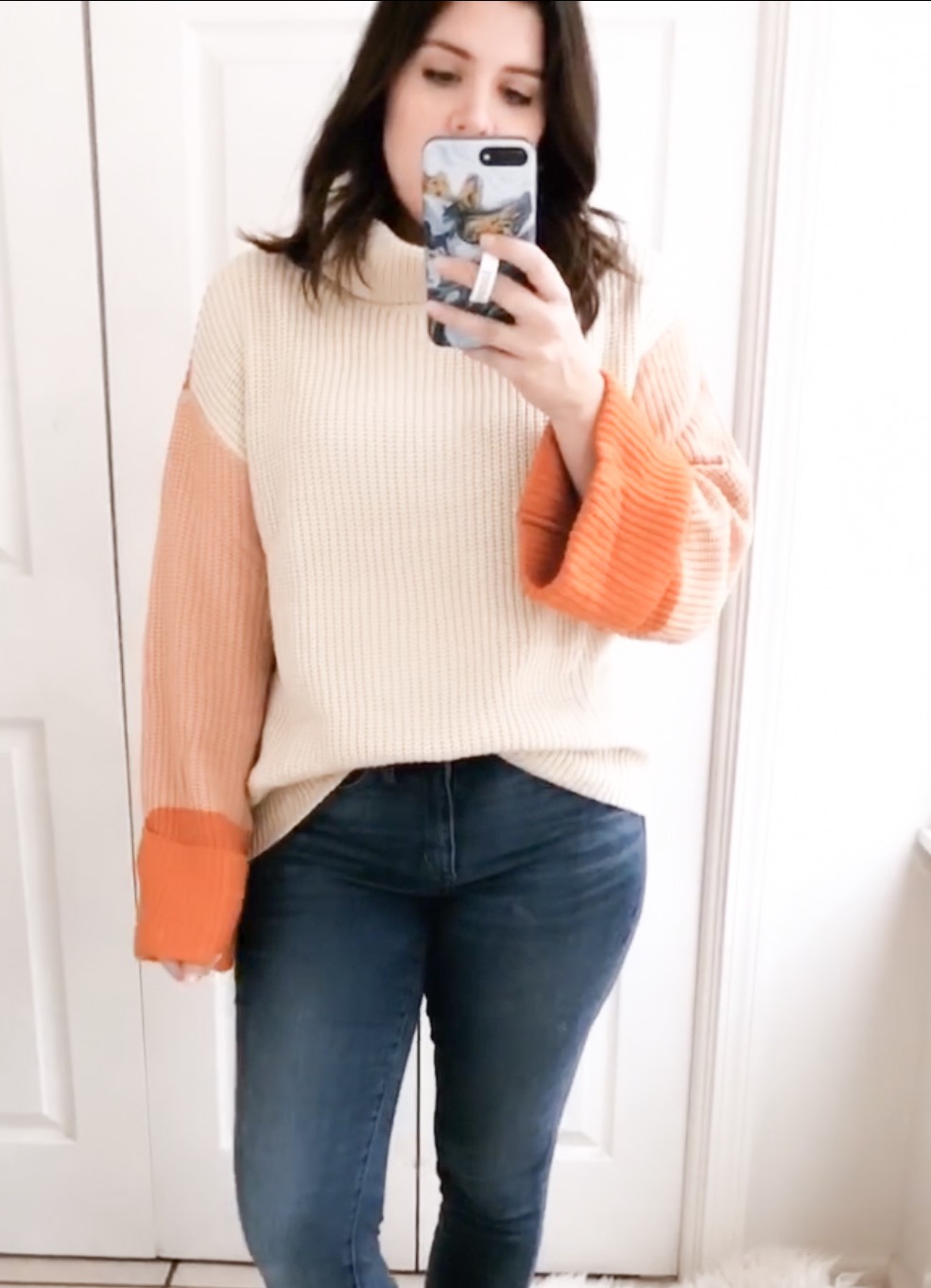 Color Block Sweater  |  Wearing a Large |  Size Up