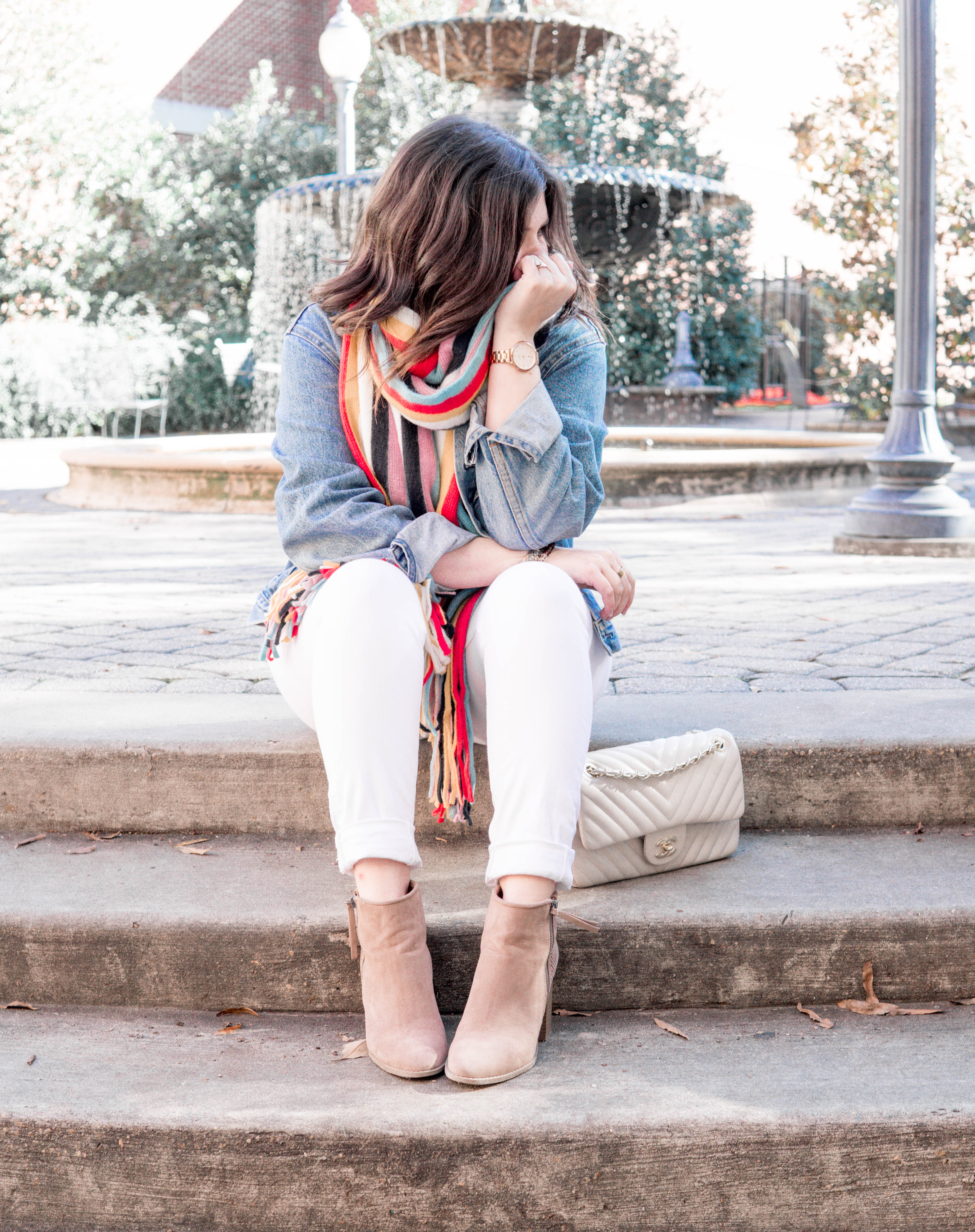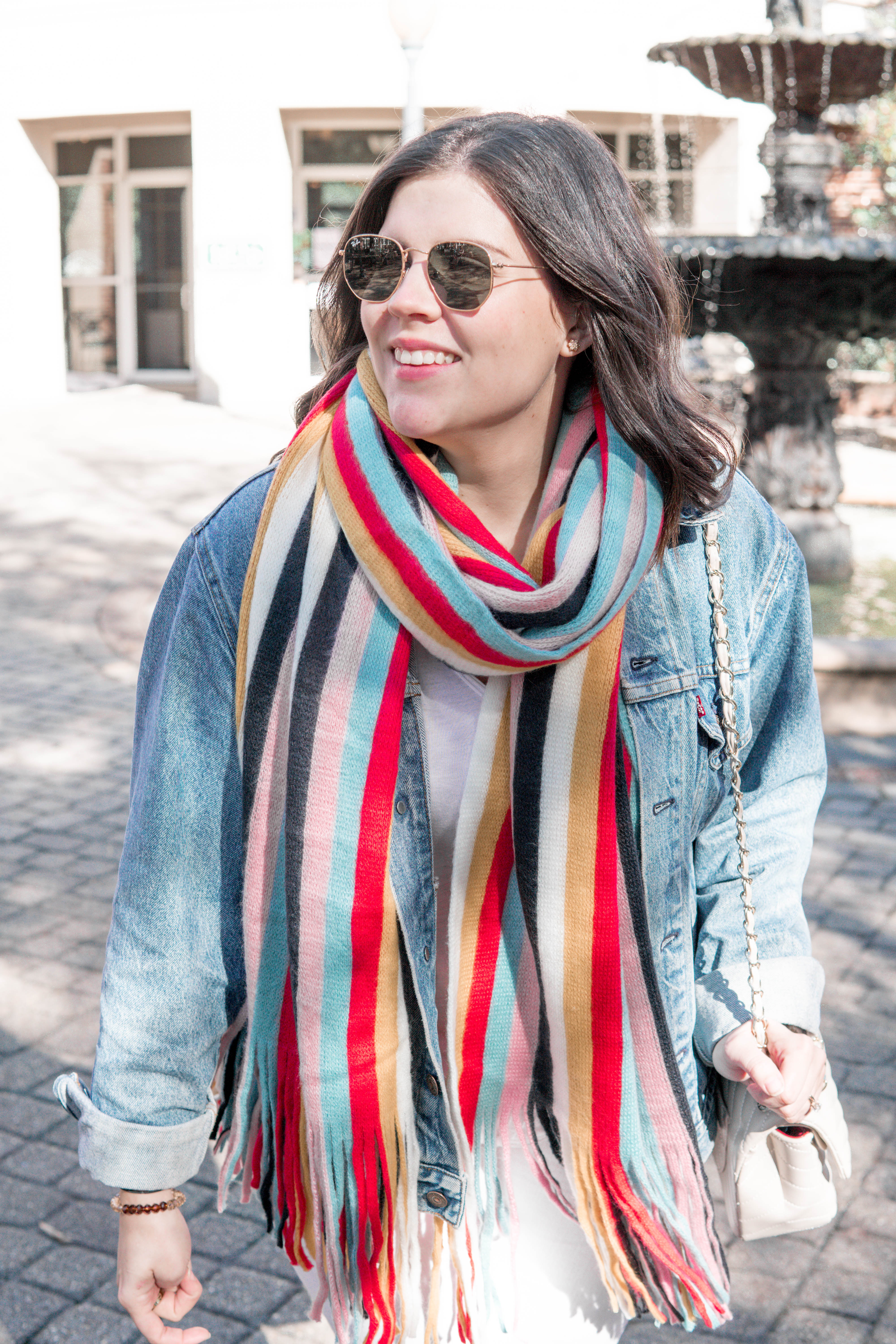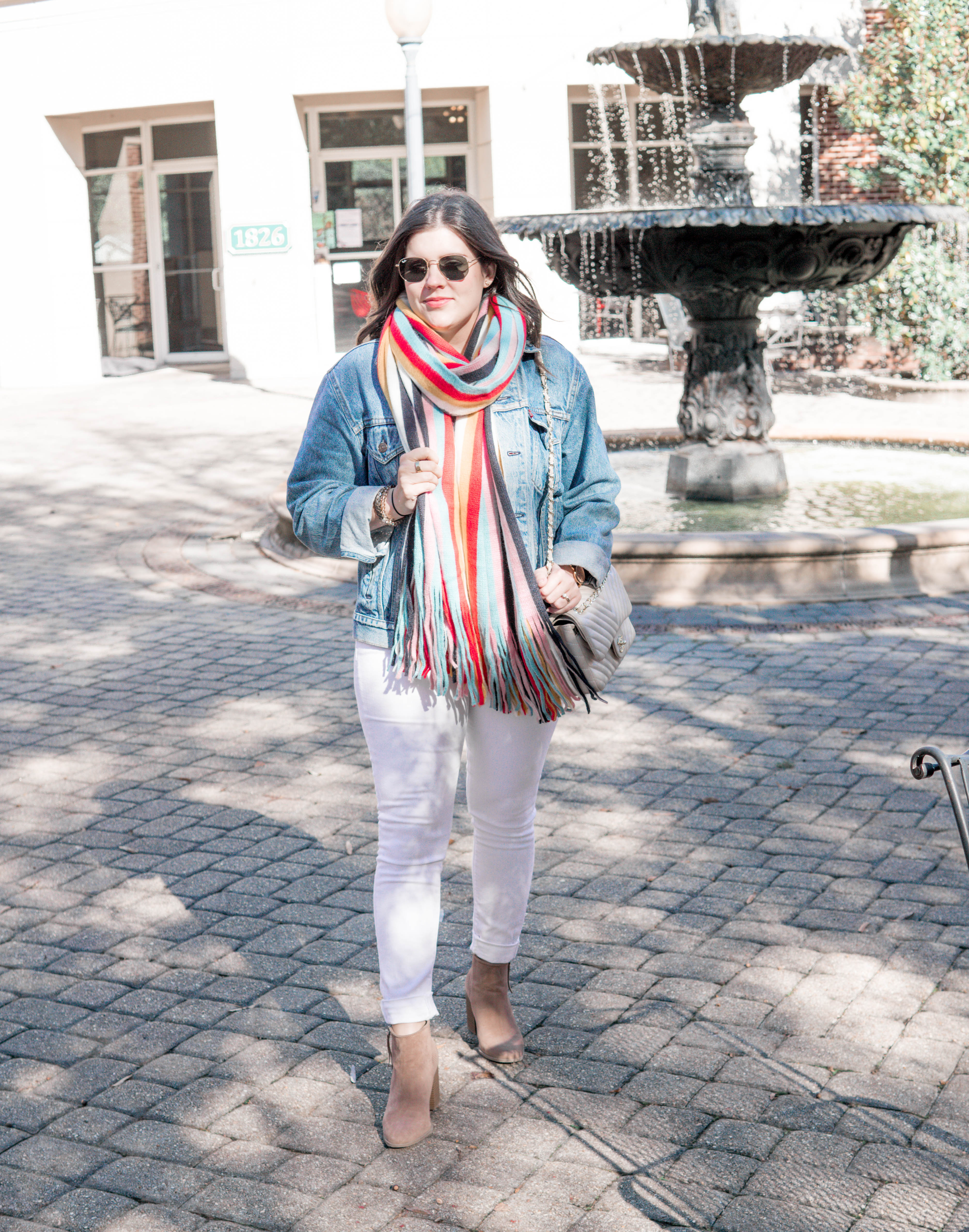 I’ve been seeing rainbow sweater everywhere this fall and TOTALLY loving them. But when I saw this scarf, I was DONE. I absolutely love it! And it’s the coziest thing ever. And the price? $30!!! It was WAY too good not to have!