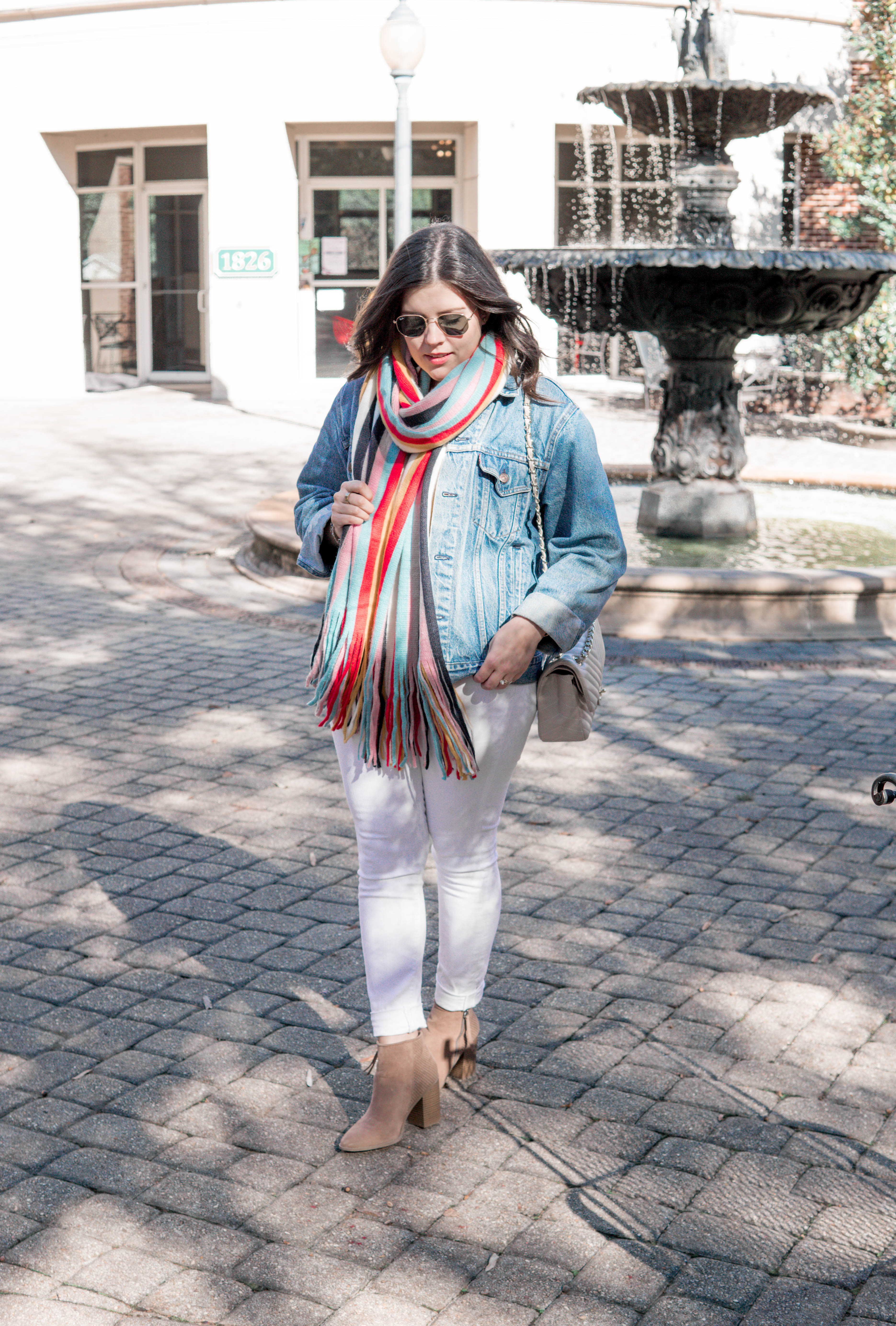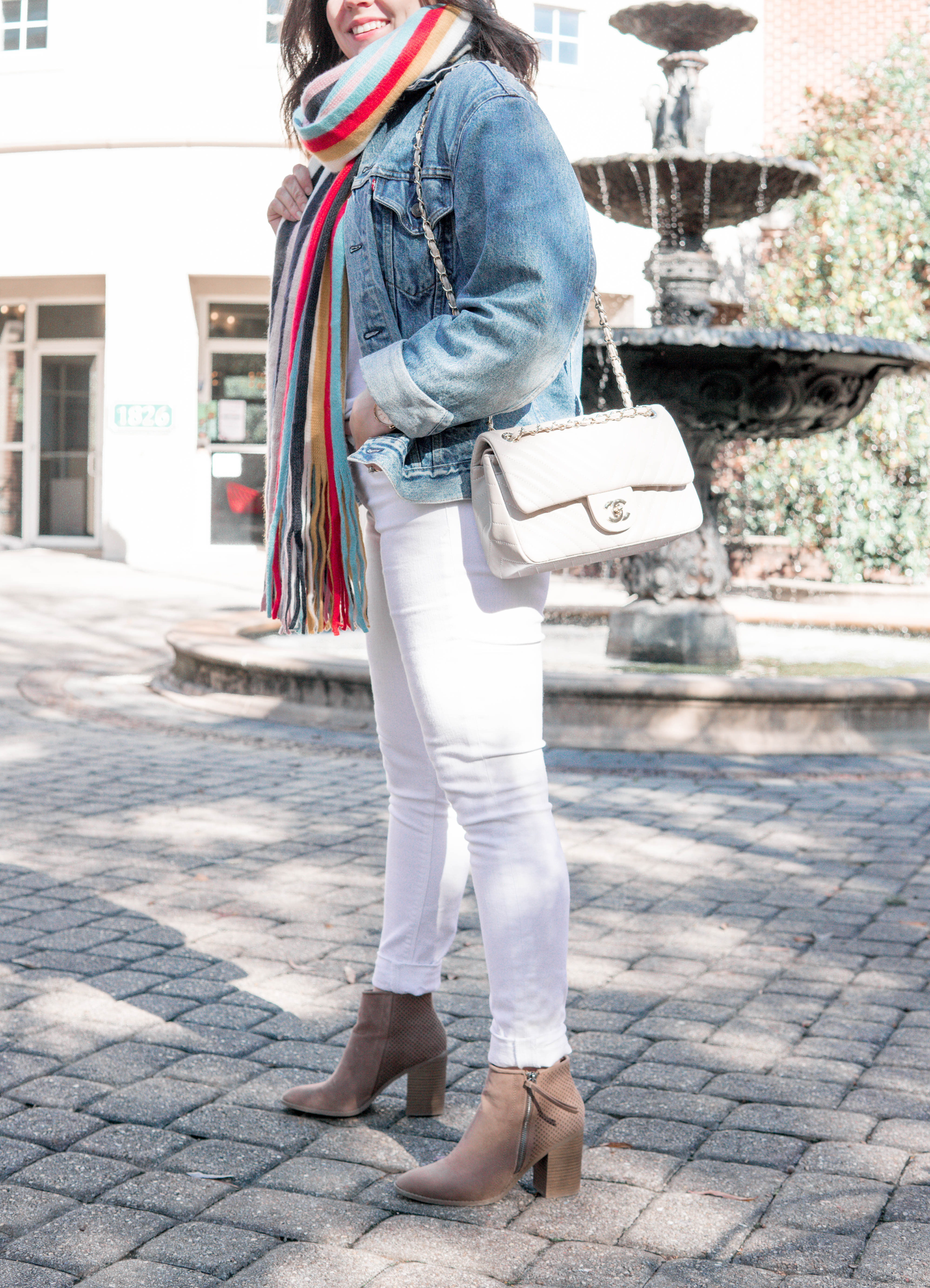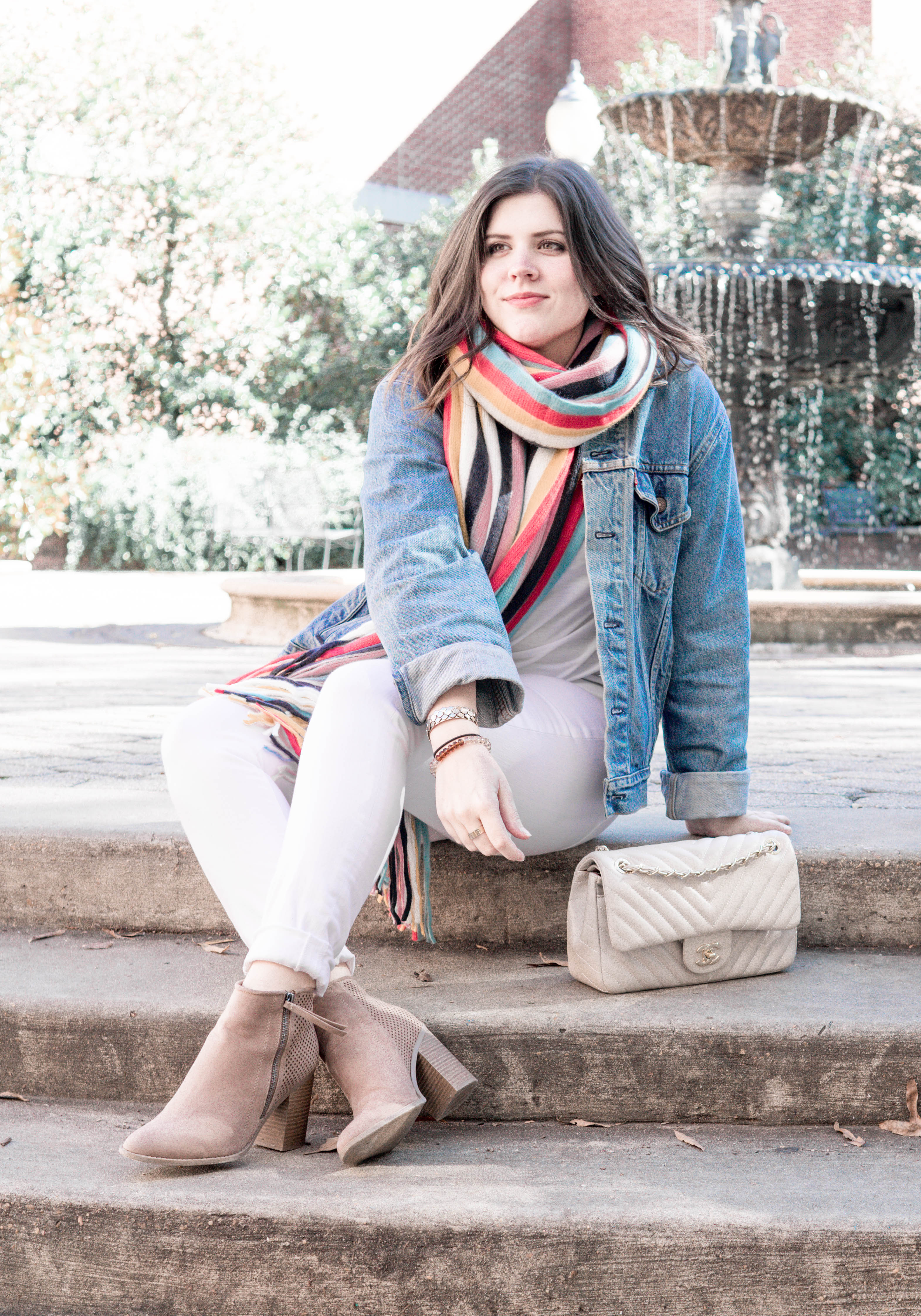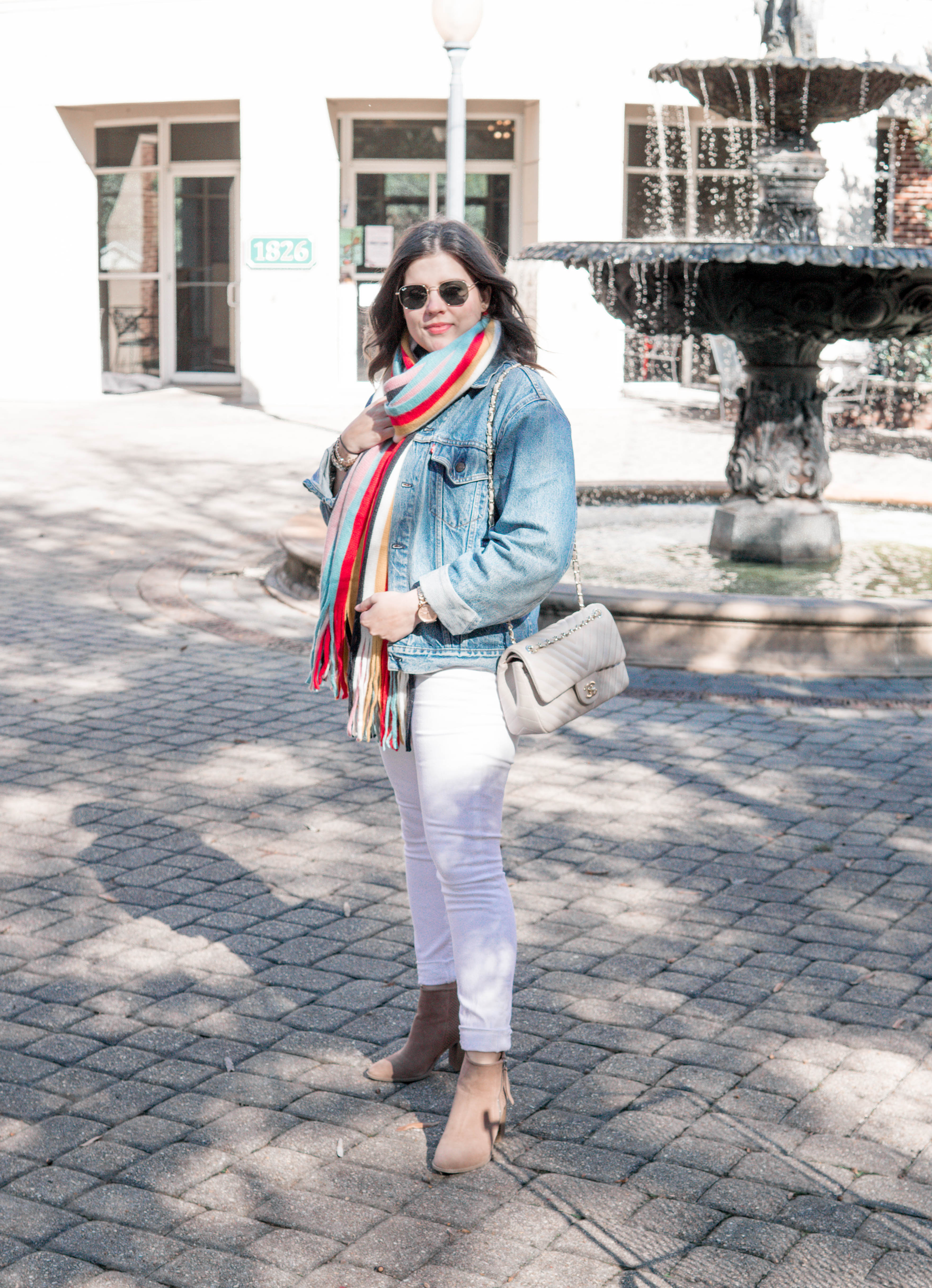 I’ve been seeing rainbow sweater everywhere this fall and TOTALLY loving them. But when I saw this scarf, I was DONE. I absolutely love it! And it’s the coziest thing ever. And the price? $30!!! It was WAY too good not to have!