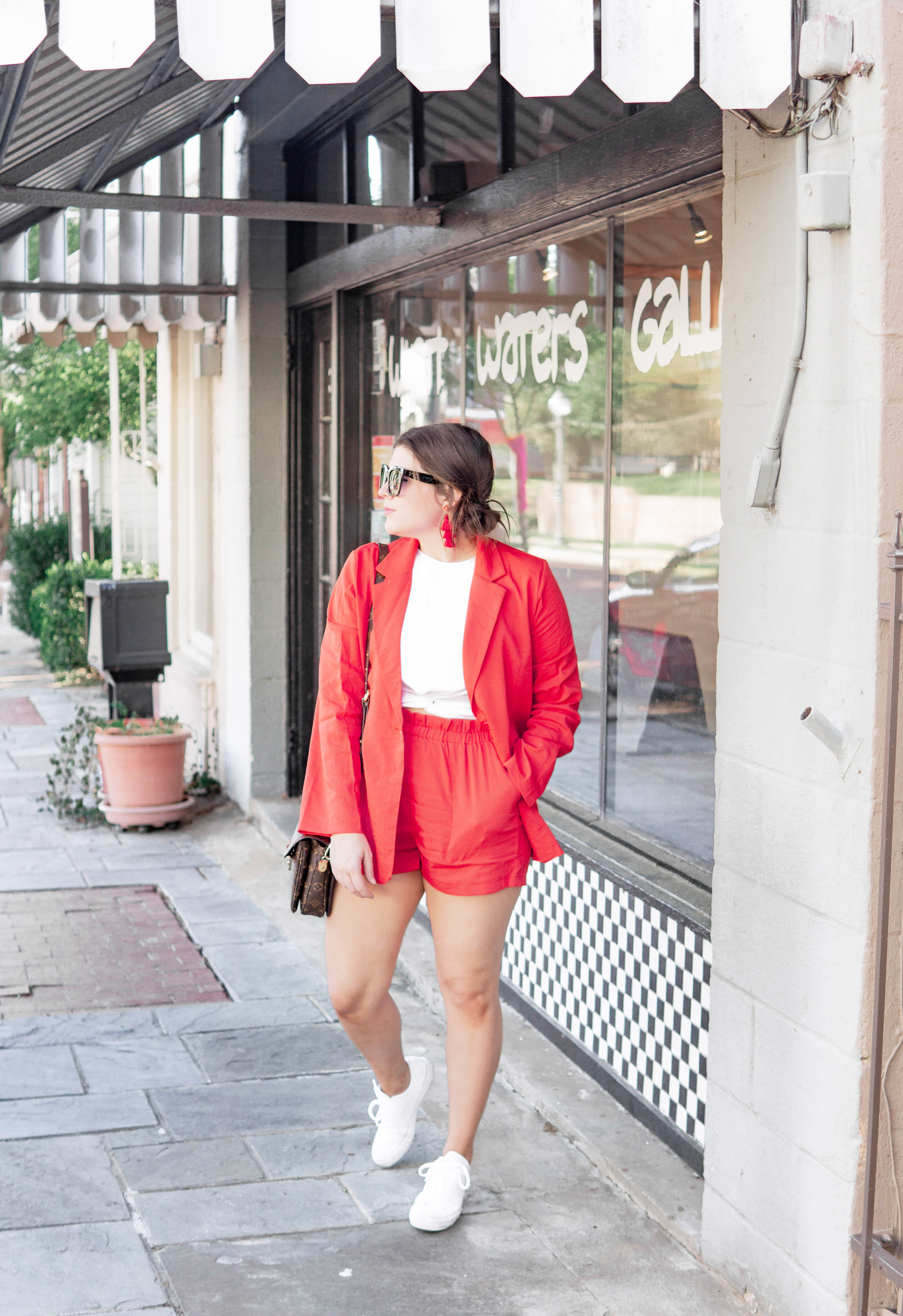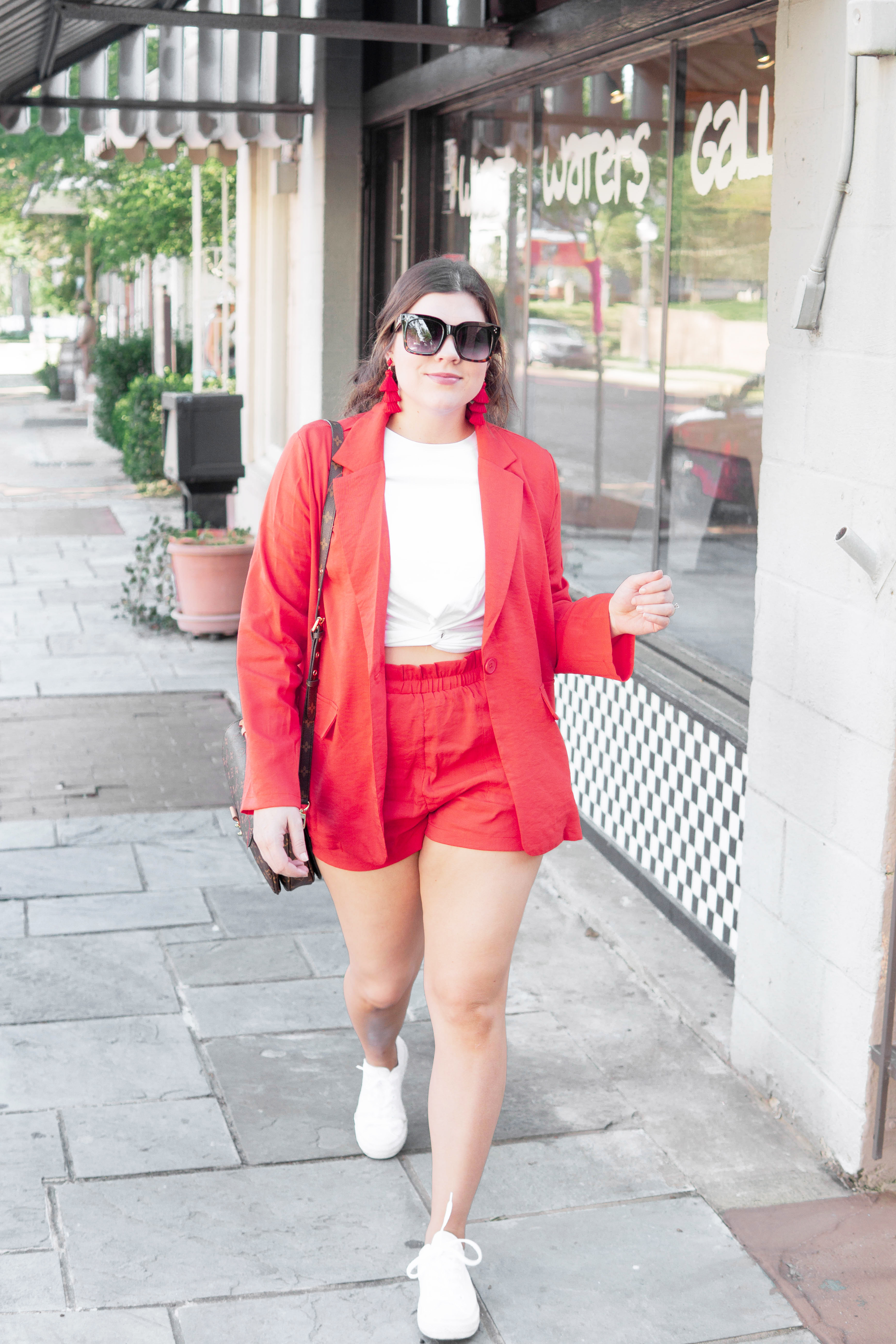 Probably my favorite part of investing in suits is that they can ALWAYS be worn as separates. So not only do I have a cute suit, but I also have some adorable red shorts to pair with any tee, and a linen blazer to throw over a sundress or with a pair of jean shorts! Multiple outfits in one! WIN WIN!