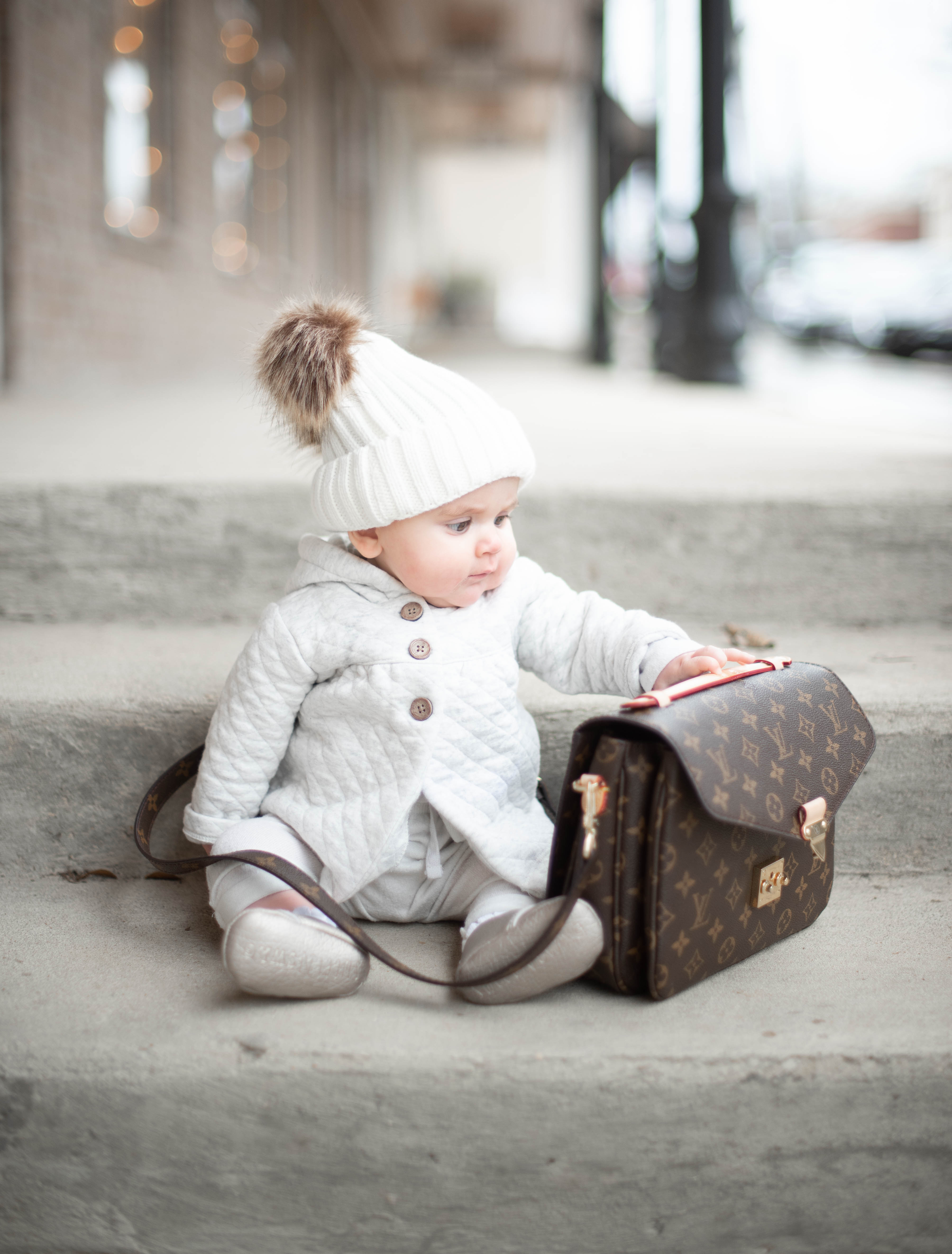 Y’all, that picture of Kate with my LV is a TOTAL FRAMER! I just love it so much. She’s such a ham for the camera already! We’re going to have sooo many great photos for the yearly photo books I’m planning on making! I need to go ahead and start working on them so that I’ll have them ready… just one more thing to add to my to-do list. Speaking of Kate, her new hat is seriously my favorite thing ever! She wears it every time we leave the house because I honestly can’t deal with the cuteness.